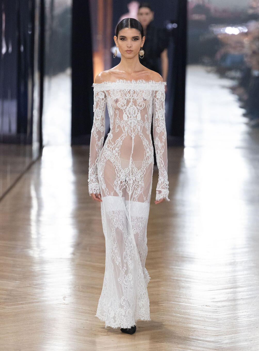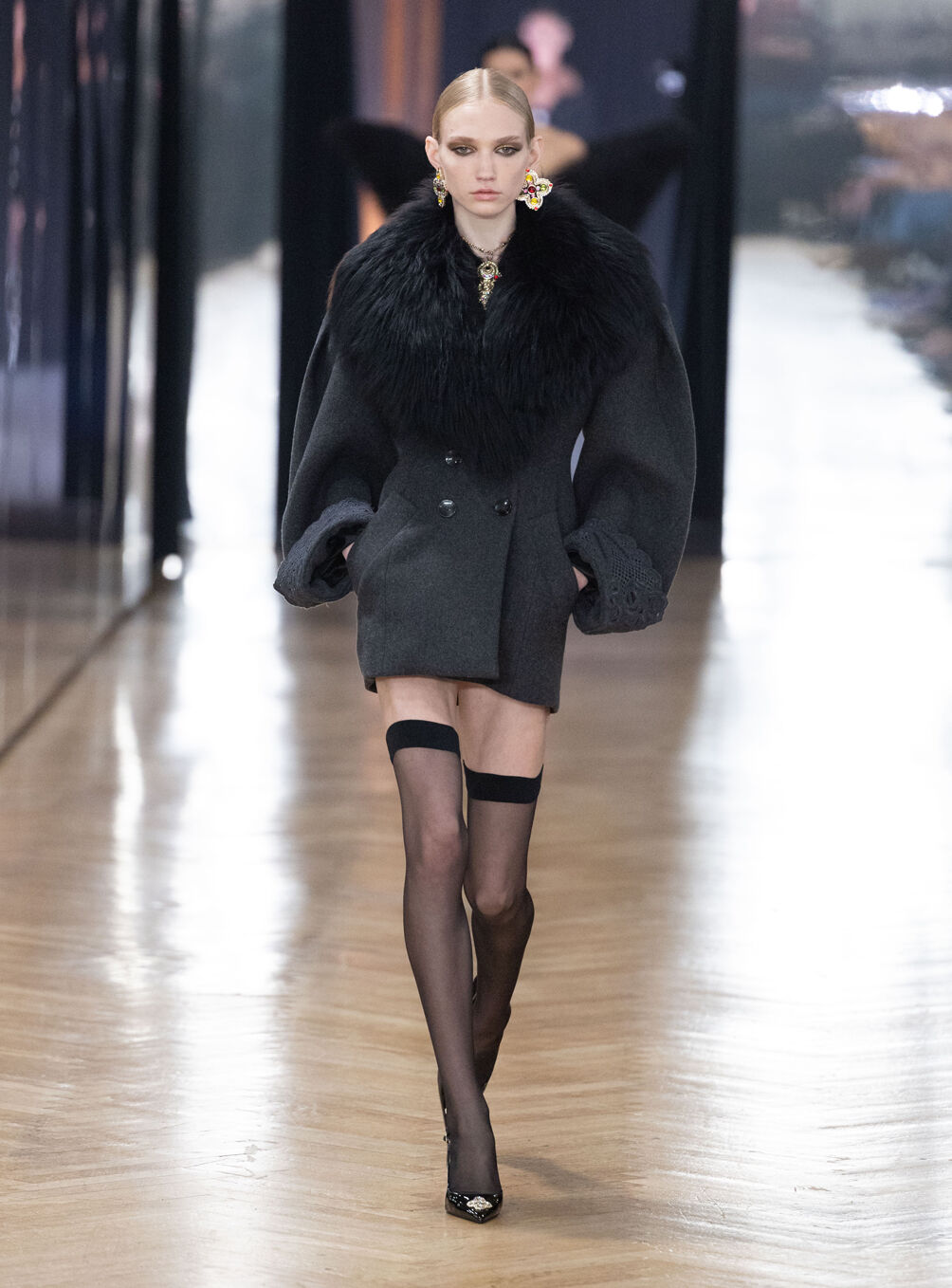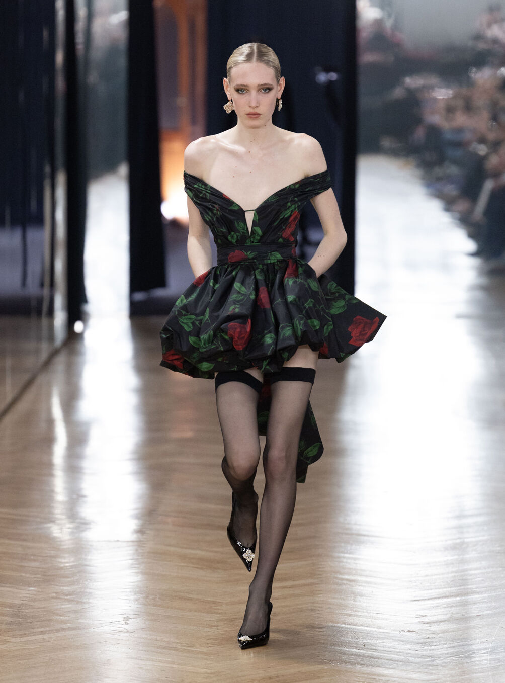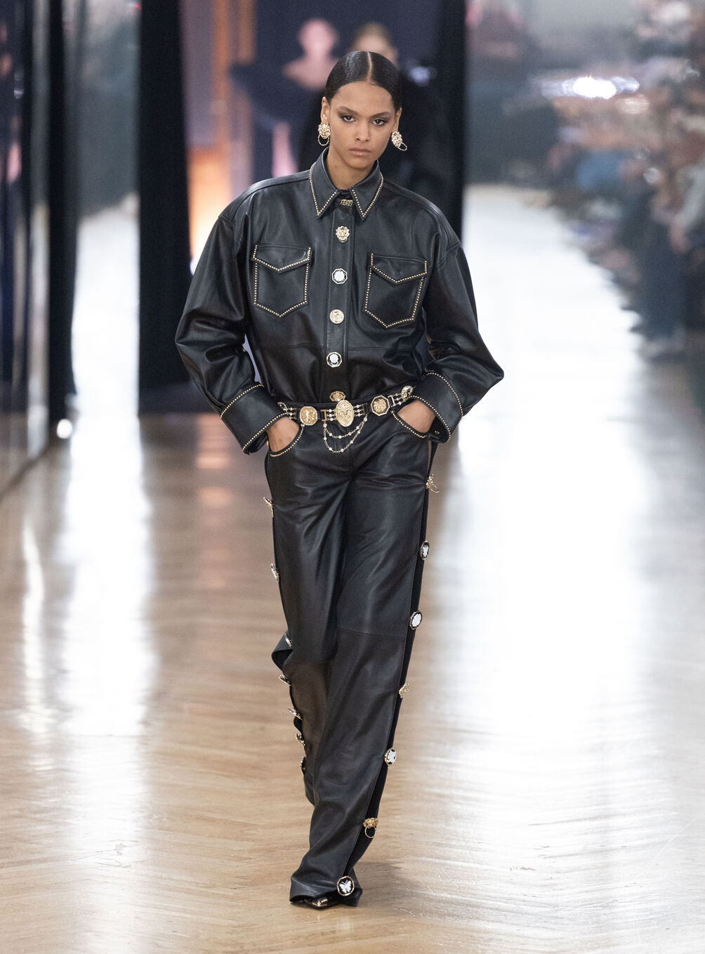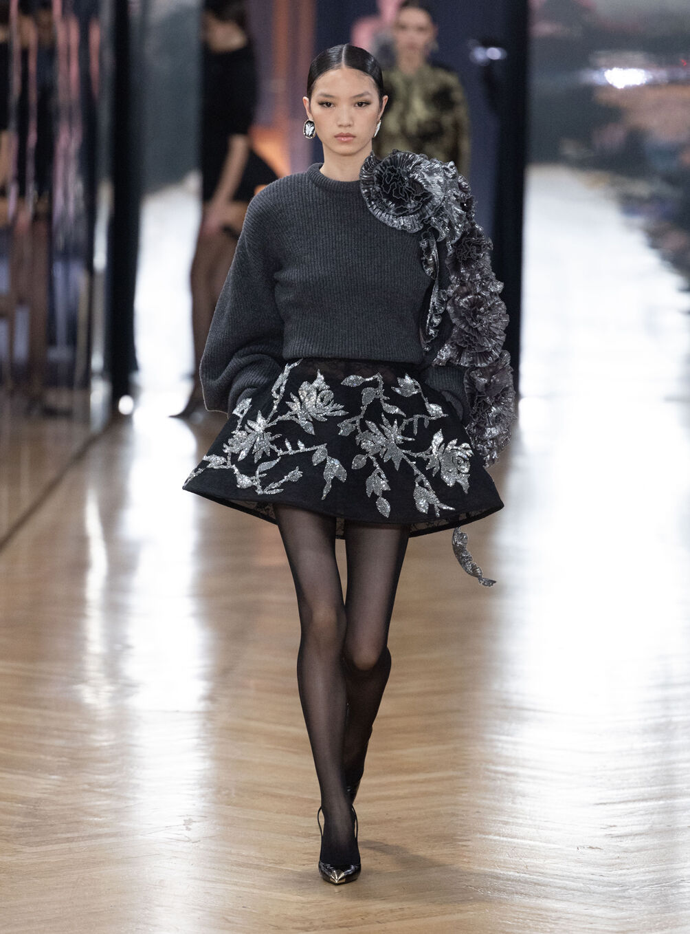 The diva personifies the Italian comprehension of glamour as power. With operatic might, she embodies a seductive spectacle of strictness and softness; of ferociousness and fragility all at once. The Blumarine Fall-Winter 2026 Collection paints a portrait of the mythological diva and her many facets through the lens of its own history. Expanding on his ongoing studies of the photographic legacy of the House – with particular reference to its collaborations with Helmut Newton – David Koma revisits Venice in an elaborate exploration of the city’s cinematic and sumptuous spirit. Staging a meeting between its baroque opulence and his own sculptural modernism and ornamentation, the Creative Director mirrors the city in the diva herself. The fusion cuts a proposal of voluminous and vivacious silhouettes rendered in a darkly theatrical palette of red, black, white, silver and gold.