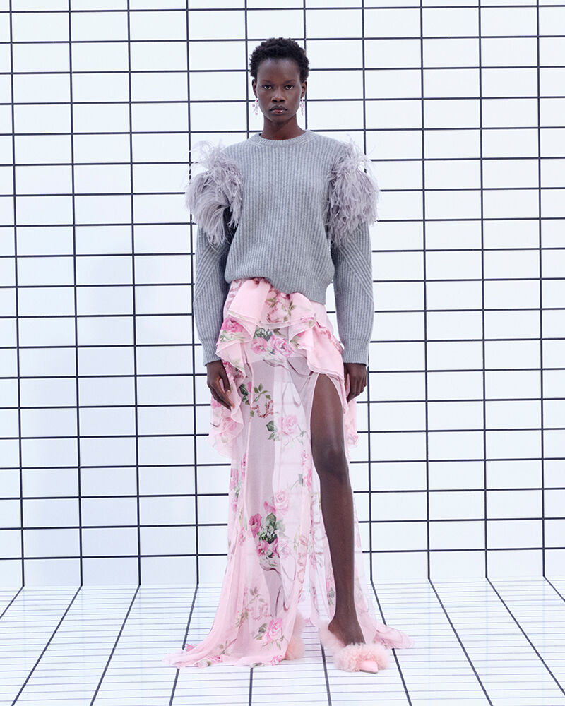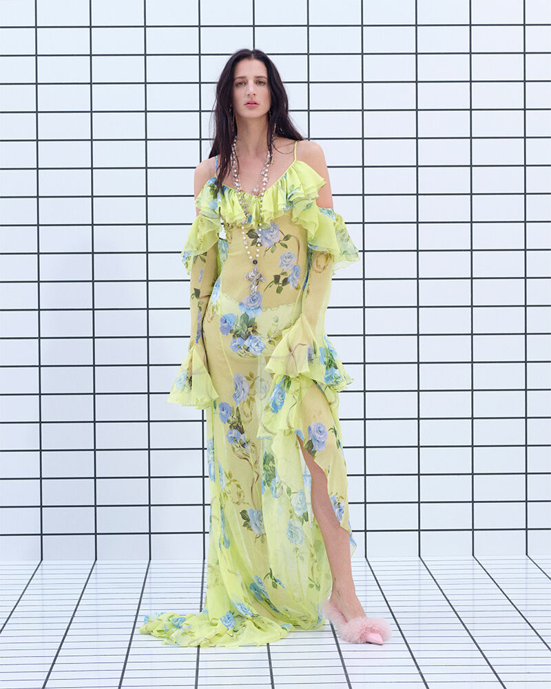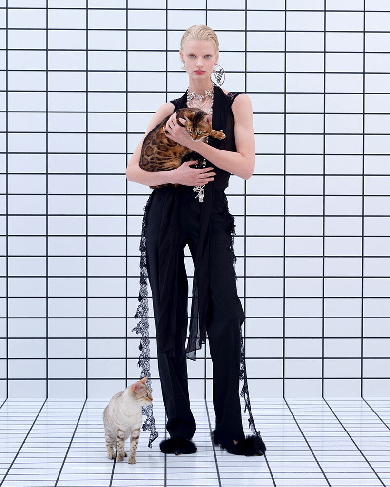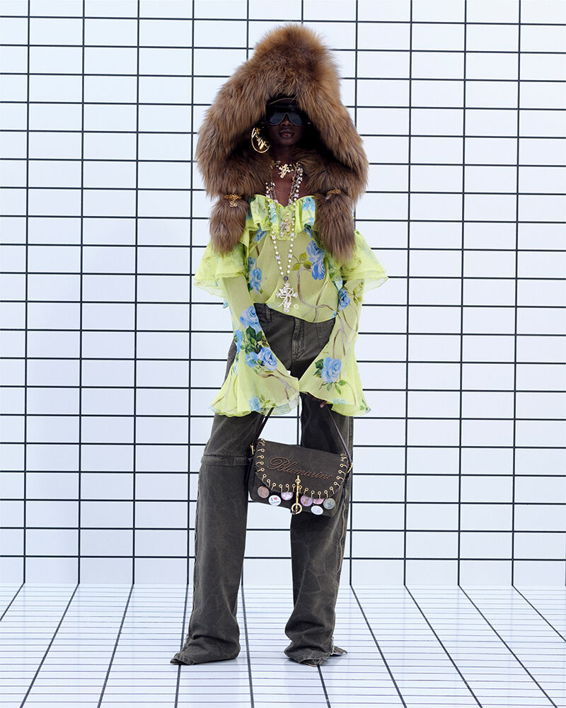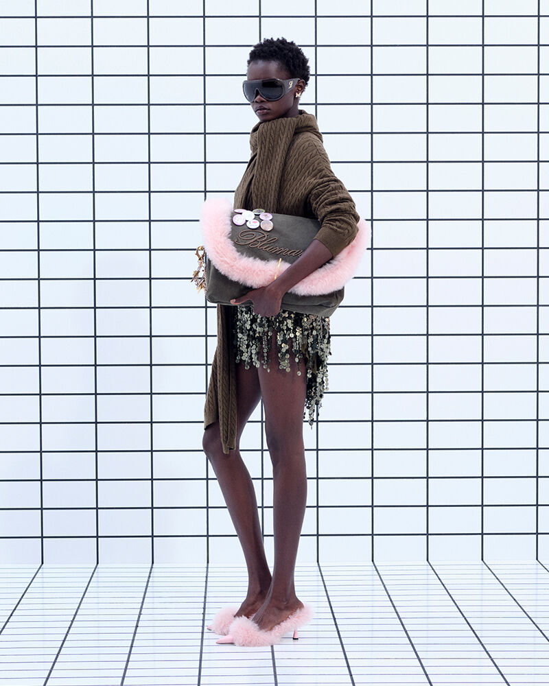 ON THE STREETS OF MILAN, A SINGULAR CULTURE OF STYLE EVOLVES THROUGH GENERATIONAL EXCHANGE. FROM THE LADYLIKE TO THE GIRLY, IT IS AN INSTINCT FOR PROPER DRESSING ADAPTED FROM MOTHER TO DAUGHTER AND FOUNDED IN AN ATTITUDE DISTINCT TO THIS CITY. IN HIS FIRST PROPOSAL FOR BLUMARINE, DAVID KOMA REFLECTS HIS APPRECIATION OF MILANESE STREET STYLE IN THE INIMITABLE SPIRIT OF THE HOUSE AS A STARTING POINT FOR A NEW CHAPTER. THE FALL-WINTER 2025 PRE-COLLECTION EXPLORES THE EFFORTLESS CONSIDERATION OF THE FEMININE MILANESE WARDROBE, ITS BOLD EASE, AND ITS SENSE FOR SASS AND SENSUALITY. EXPRESSED THROUGH THE VISUAL VERNACULAR CREATED BY THE PREVIOUS CUSTODIANS OF THE HOUSE, IT IS AN EXERCISE IN INTRINSIC GLAMOUR, EVERYDAY ELEVATION, AND LIGHT-HEARTED CONFIDENCE.