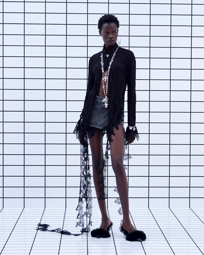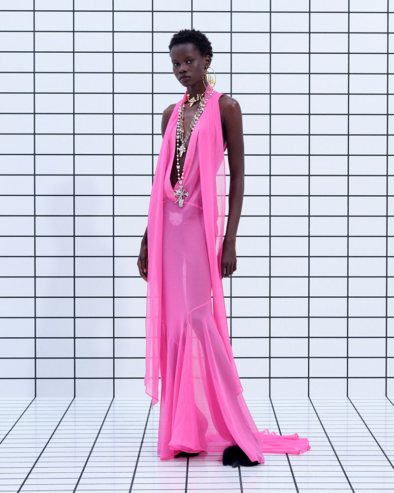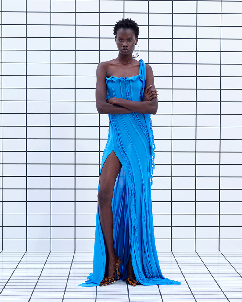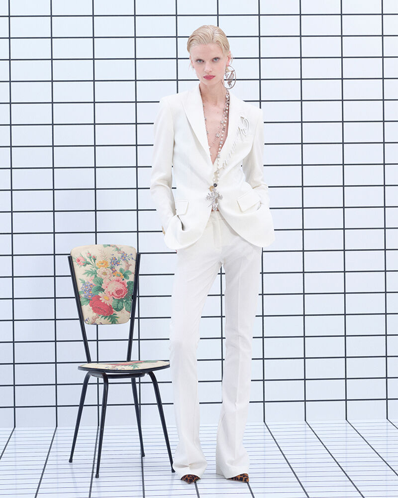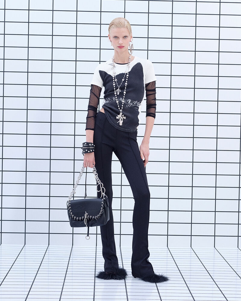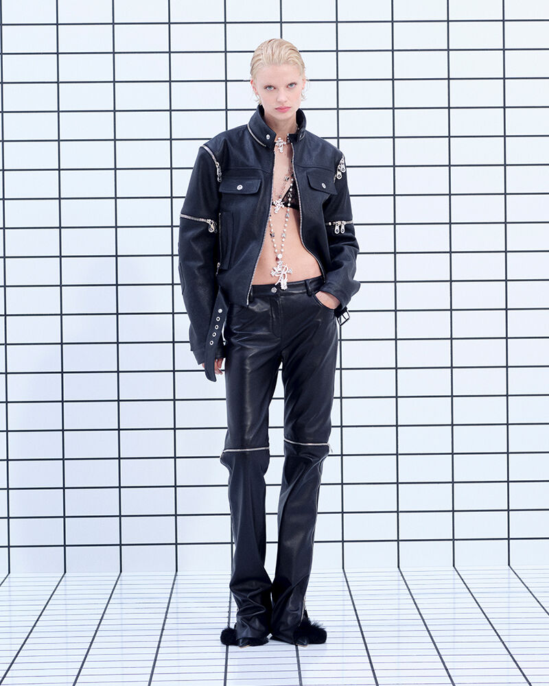 ON THE STREETS OF MILAN, A SINGULAR CULTURE OF STYLE EVOLVES THROUGH GENERATIONAL EXCHANGE. FROM THE LADYLIKE TO THE GIRLY, IT IS AN INSTINCT FOR PROPER DRESSING ADAPTED FROM MOTHER TO DAUGHTER AND FOUNDED IN AN ATTITUDE DISTINCT TO THIS CITY. IN HIS FIRST PROPOSAL FOR BLUMARINE, DAVID KOMA REFLECTS HIS APPRECIATION OF MILANESE STREET STYLE IN THE INIMITABLE SPIRIT OF THE HOUSE AS A STARTING POINT FOR A NEW CHAPTER. THE FALL-WINTER 2025 PRE-COLLECTION EXPLORES THE EFFORTLESS CONSIDERATION OF THE FEMININE MILANESE WARDROBE, ITS BOLD EASE, AND ITS SENSE FOR SASS AND SENSUALITY. EXPRESSED THROUGH THE VISUAL VERNACULAR CREATED BY THE PREVIOUS CUSTODIANS OF THE HOUSE, IT IS AN EXERCISE IN INTRINSIC GLAMOUR, EVERYDAY ELEVATION, AND LIGHT-HEARTED CONFIDENCE.